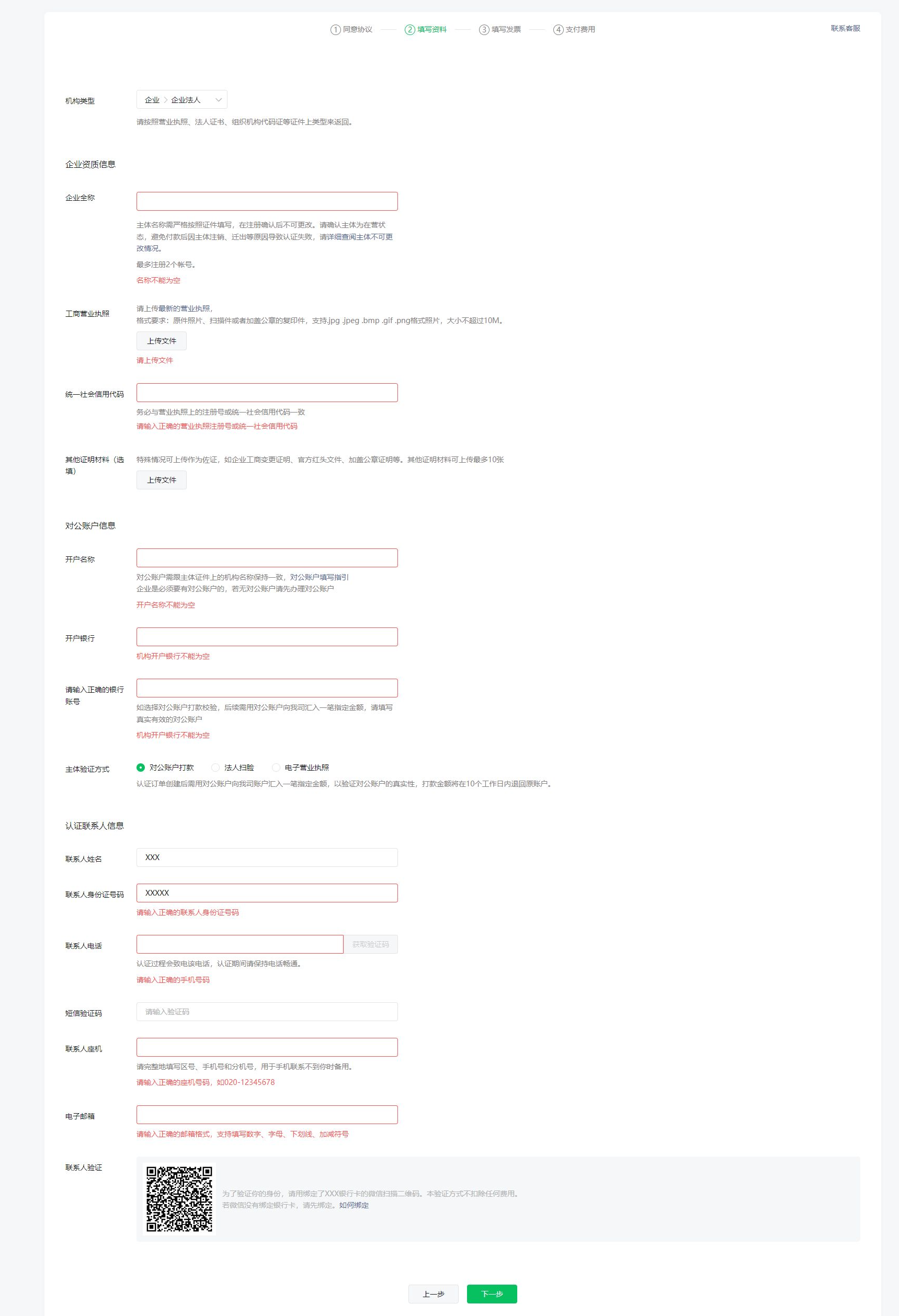 認證聯(lián)系人信息:姓名、身份證正反面照片、電話、手機、電子郵箱