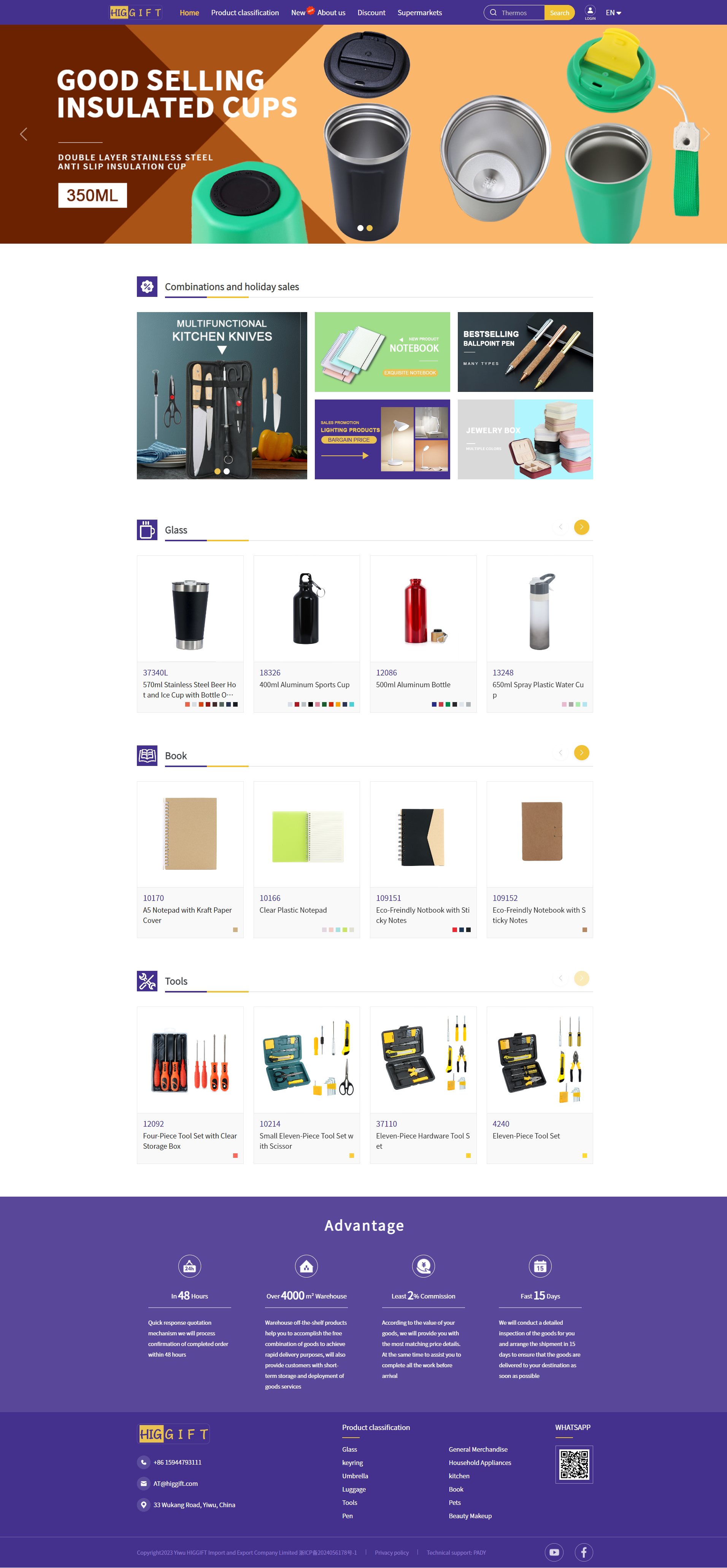 本次外貿(mào)獨(dú)立站項(xiàng)目是面向禮品和日用品批發(fā)的電商平臺(tái),為用戶提供豐富多樣的產(chǎn)品類別展示,醒目的產(chǎn)品輪播圖,結(jié)構(gòu)清晰的產(chǎn)品分類模塊,幫助用戶快速找到所需商品,網(wǎng)站還提供了明確的聯(lián)系方式、WhatsApp二維碼,方便客戶隨時(shí)聯(lián)系。