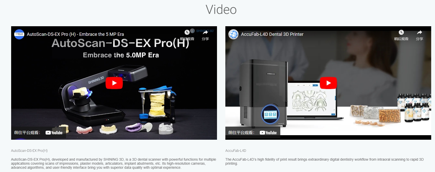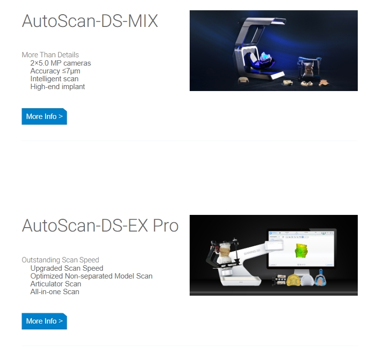 從“Lab Scanner”(實驗室掃描儀)、“3D Print”(3D 打印)到“CAD Design”(CAD 設(shè)計)等產(chǎn)品類別,每個部分都有明確的標(biāo)題和間距,使內(nèi)容的層次分明,用戶可以直觀地瀏覽每種產(chǎn)品分類。