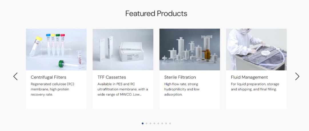 應(yīng)用領(lǐng)域分類清晰,在展示的時候,直觀展示出產(chǎn)品在不同領(lǐng)域(如生物制藥、醫(yī)療、食品飲料等)的應(yīng)用,通過簡潔的圖標(biāo)和文字組合設(shè)計,既讓網(wǎng)站有美觀度,又可以吸引用戶,統(tǒng)一的圖標(biāo),還讓網(wǎng)站視覺更好。
