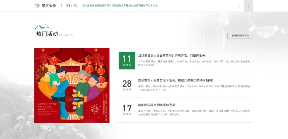在首頁展示熱門活動和最新新聞,讓游客快速獲取當前活動和重要信息,吸引用戶關注最新動態(tài)。