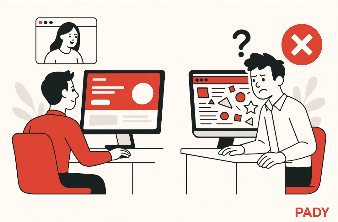 • 設計太雜:動效、按鈕、圖標全堆在一起,客戶找不到重點;
