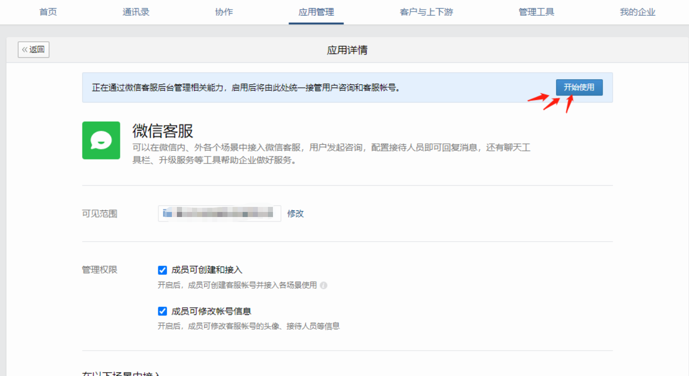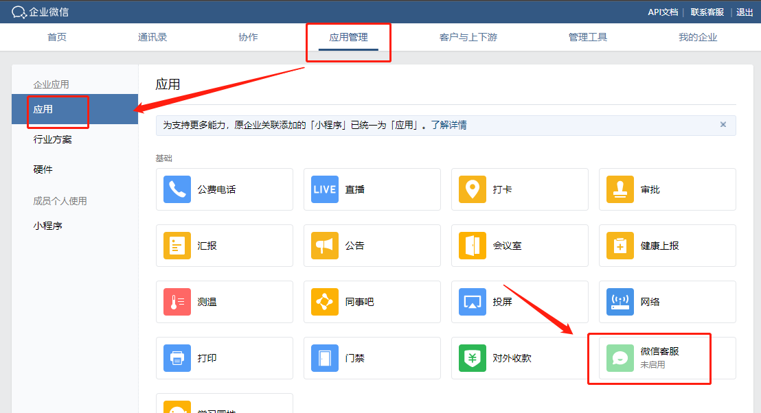 找到 應(yīng)用管理-應(yīng)用-微信客服