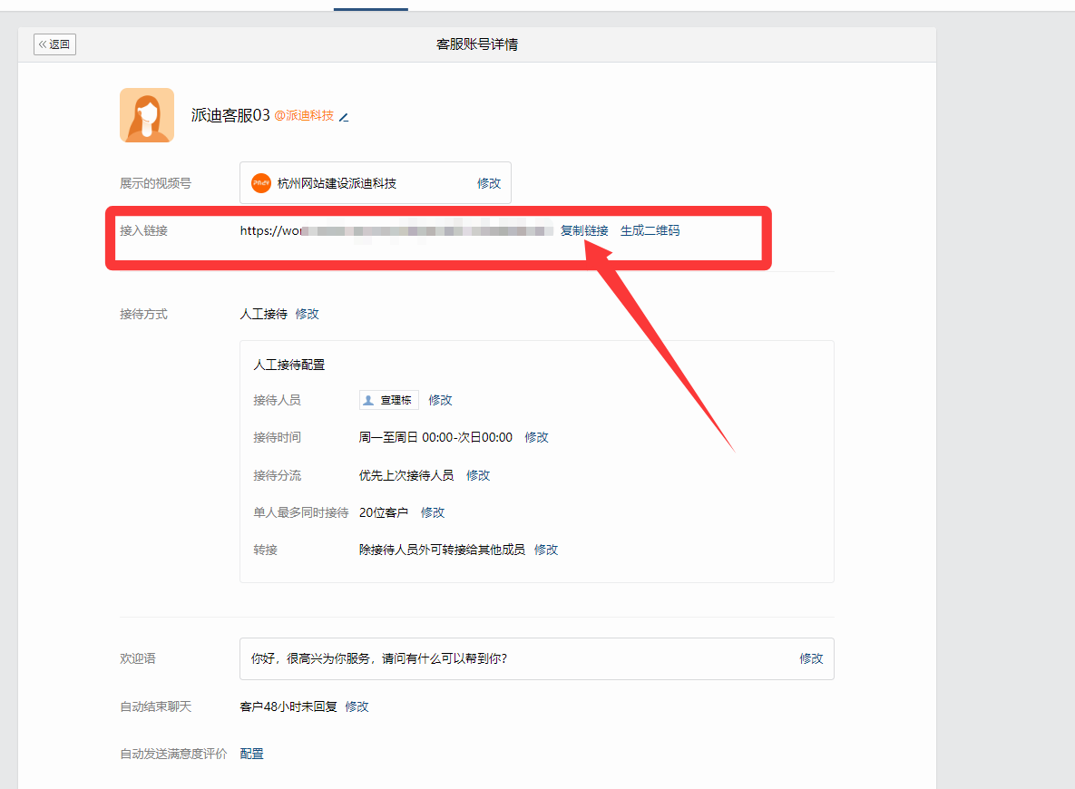 再將您的 企業(yè)ID 和客服地址 存好發(fā)我們