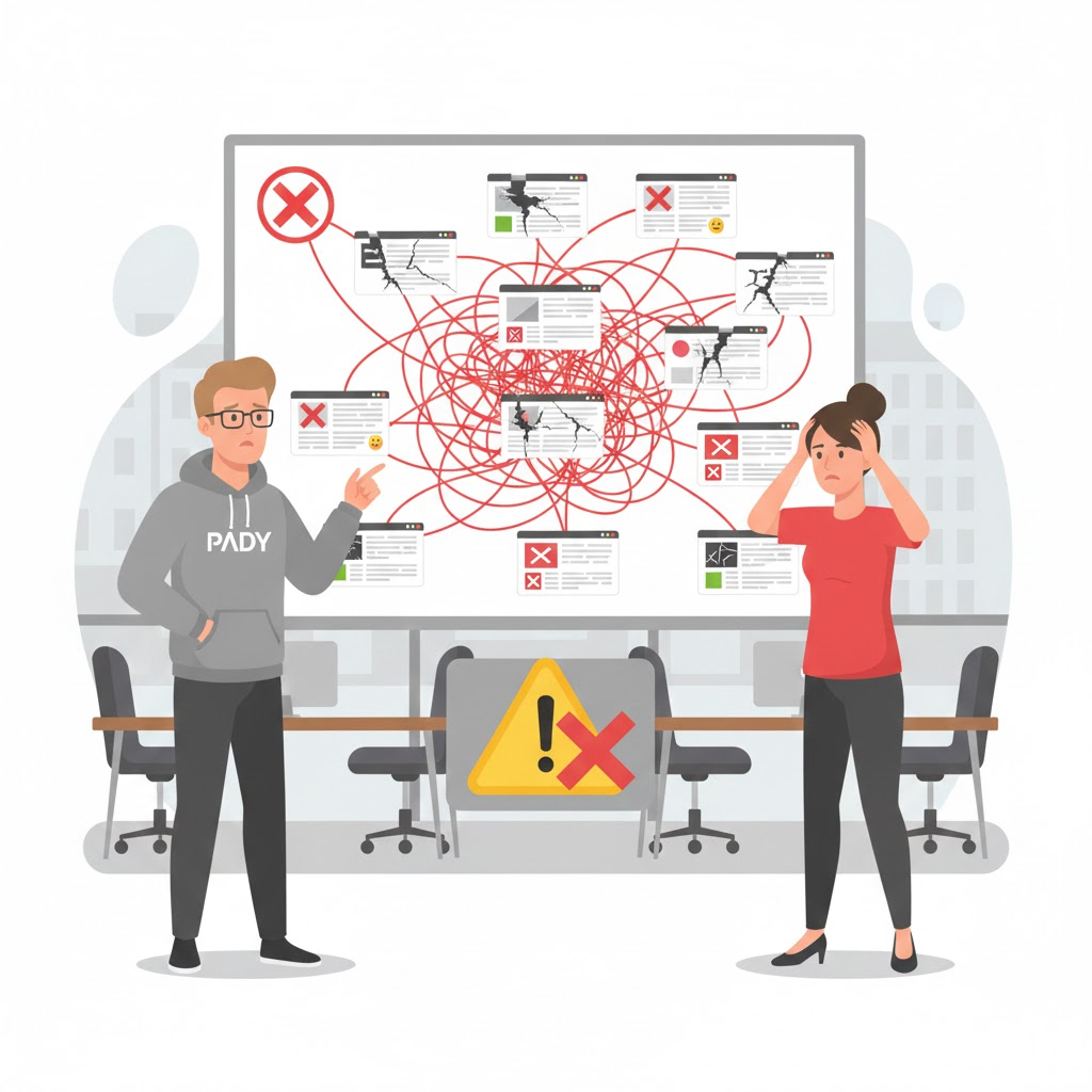 最常見(jiàn)的錯(cuò)誤順序是:先談頁(yè)面風(fēng)格、再列功能清單、然后邊做邊改,最后再補(bǔ)內(nèi)容和SEO。這種順序會(huì)導(dǎo)致三個(gè)必然結(jié)果:結(jié)構(gòu)被視覺(jué)牽著走、功能被情緒牽著走、內(nèi)容被進(jìn)度牽著走。最終交付出來(lái)的是一個(gè)“能用但很難用”的網(wǎng)站——上線能跑,長(zhǎng)期難迭代。