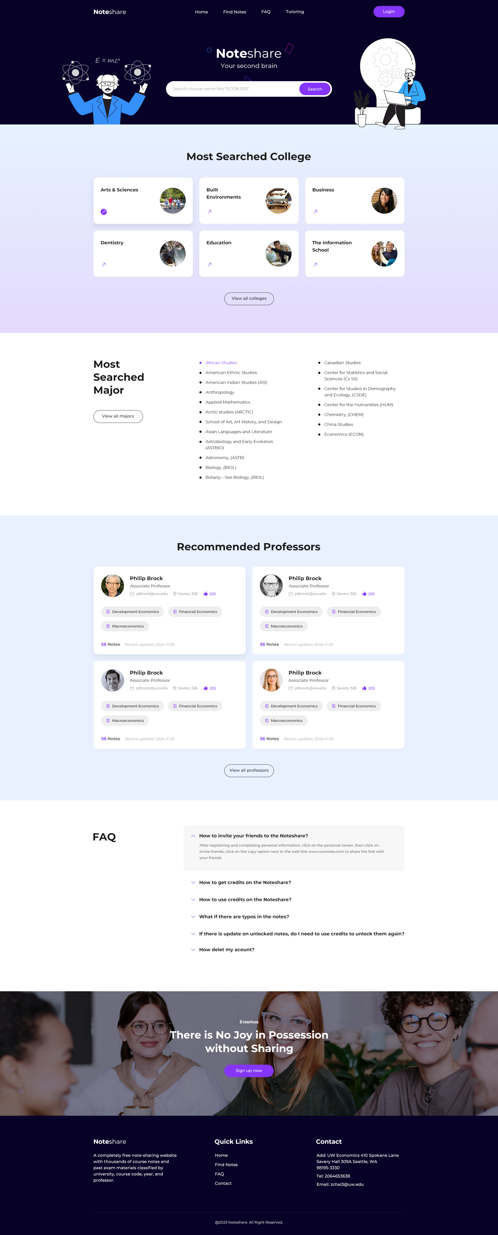 本項目為校園筆記共享與課程資源聚合平臺開發(fā),網(wǎng)站圍繞“課程搜索 + 專業(yè)分類 + 教授推薦 + 內(nèi)容共享”四大核心結(jié)構(gòu)進行整體規(guī)劃,支持用戶注冊登錄、資料檢索、筆記展示與互動功能,構(gòu)建以內(nèi)容為核心的校園知識社區(qū)。