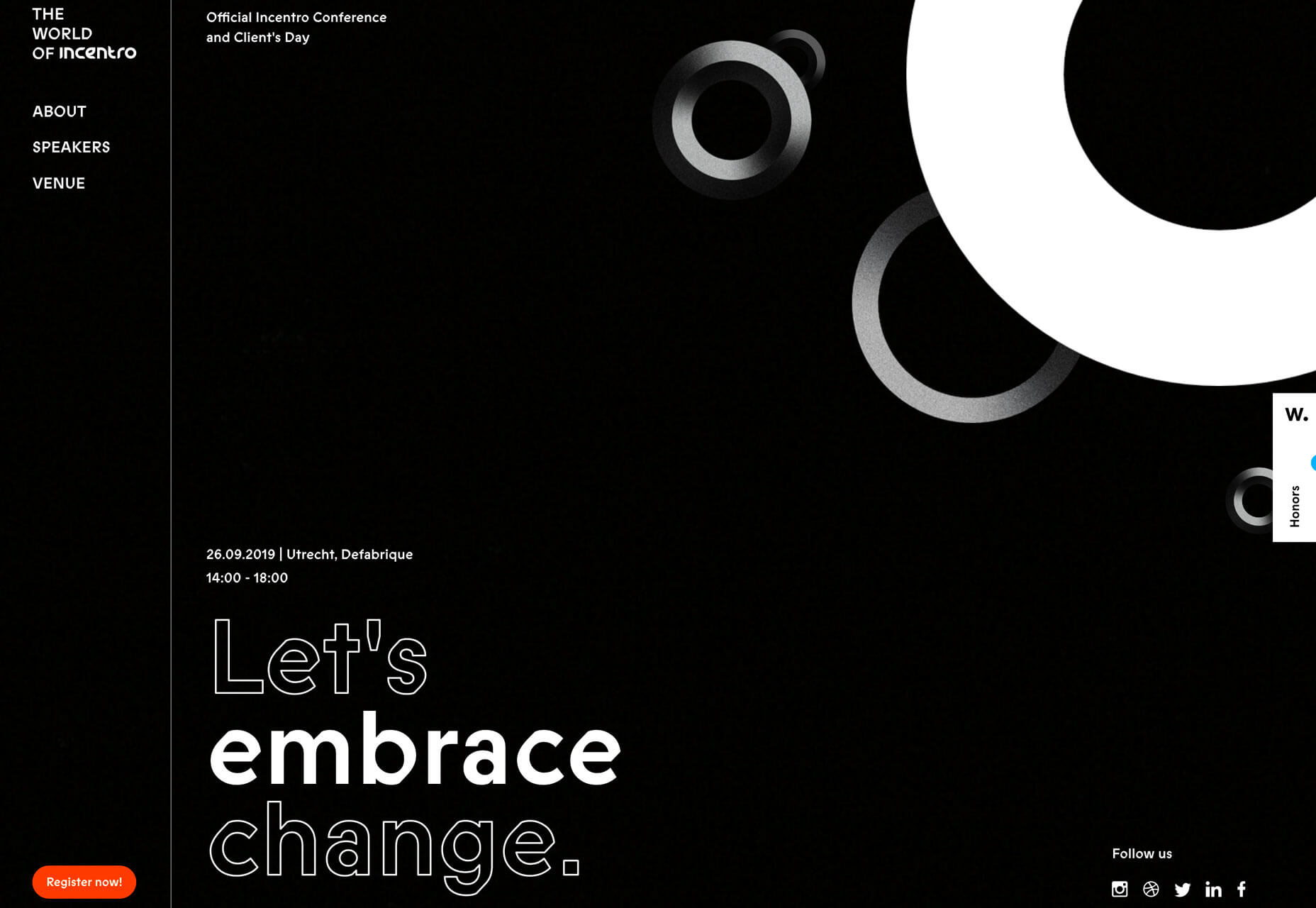 《 Incentro世界》使用了多個球體,這些球體以較小的運(yùn)動和精美的動畫作為裝飾元素。此外,設(shè)計使用紅色的圓形光標(biāo)來鼓勵與設(shè)計的結(jié)合。(如果您稍微點(diǎn)擊一下該站點(diǎn),您還會發(fā)現(xiàn)它利用了此處提到的第一種趨勢,并帶有不同層次的模糊文本。)