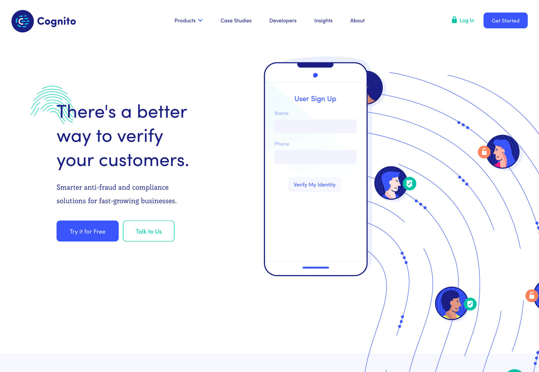 Cognito在屏幕上使用平衡的權(quán)重以及文本和線條插圖。此處的空間使設(shè)計感到忙碌而無需同時處理許多元素,包括導(dǎo)航菜單,標(biāo)題,輔助文本,兩個按鈕,動畫插圖和聊天框