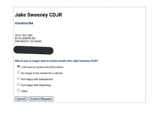 注冊(cè)表單通常帶有預(yù)選其新聞通訊的選項(xiàng)。我還遇到了在購票過程中預(yù)先選擇了某些附加服務(wù)的航空公司。忘記取消選擇那些是一個(gè)昂貴的錯(cuò)誤。但是,有一個(gè)取消訂閱電子郵件時(shí)事通訊的過程,這很公然: