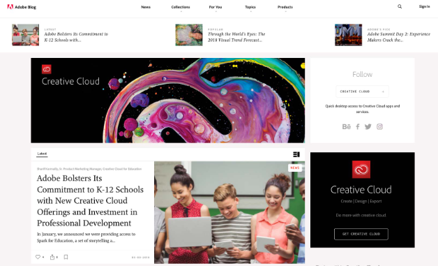 SaaS行業(yè)中最成功的企業(yè)正在使用此策略,其中一個(gè)著名的例子是Adobe Creative Cloud。當(dāng)您查看Adobe Creative Cloud的博客時(shí),您會(huì)發(fā)現(xiàn)它是小型SaaS企業(yè)效仿的榜樣。它涵蓋了廣泛的主題,從為什么要繪制教程到客戶(hù)為什么需要Adobe才能使他們的業(yè)務(wù)成功的原因。