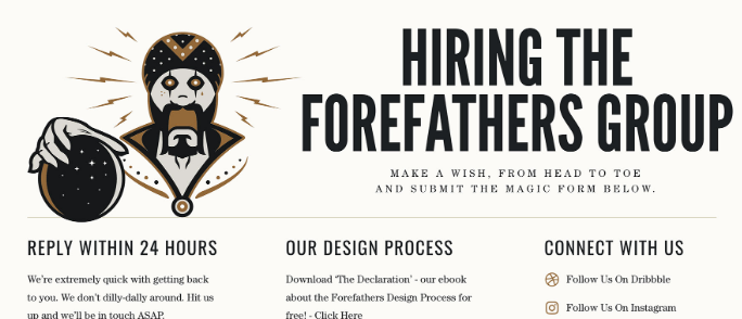 在根據(jù)潛在客戶的需求創(chuàng)建聯(lián)系表單時,?Forofather的工作非常出色。與其使用要求姓名,地址和消息的標(biāo)準(zhǔn)聯(lián)系表格,不如將其具體化。最終,他們可以根據(jù)個人需求(而不是一般性響應(yīng))制定量身定制的響應(yīng)。表格的問題足以讓他們確定您的需求,而又不會太打擾。