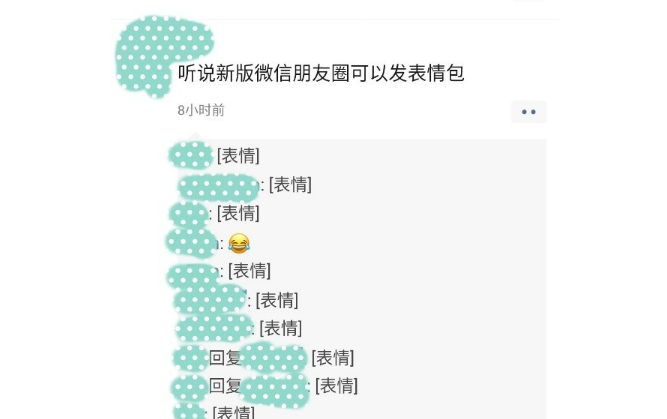 ??很多網(wǎng)友都想或者已經(jīng)嘗試了微信朋友圈評論發(fā)自定義表情包,但在今晚部分網(wǎng)友發(fā)現(xiàn)該功能已經(jīng)關(guān)閉,表情包照片全變成“[表情]”,希望優(yōu)化更新后可以重新回歸。