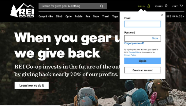 在REI,凱瑟琳最近在一個(gè)項(xiàng)目上實(shí)施了無(wú)摩擦設(shè)計(jì)的示例。她的團(tuán)隊(duì)發(fā)現(xiàn),當(dāng)客戶準(zhǔn)備將商品添加到購(gòu)物車中時(shí),登錄后會(huì)將客戶轉(zhuǎn)到新的網(wǎng)頁(yè),從而破壞了購(gòu)物體驗(yàn)。為了解決此問(wèn)題,她A / B測(cè)試了登錄小部件,該小部件打開(kāi)了下拉登錄模式,從而將體驗(yàn)保持在頁(yè)面上,而不是將購(gòu)物者發(fā)送到新的登錄頁(yè)面。