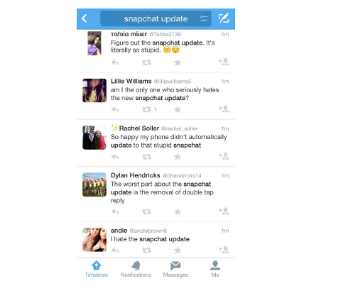Snapchat有問(wèn)題。他們的用戶(hù)(a。)對(duì)更新不滿(mǎn)意,并且(b。)不確定如何使用它。因此,用戶(hù)可能會(huì)大量拋棄Snapchat,對(duì)吧?