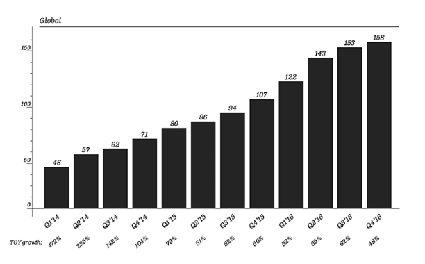 相反。隨著Snapchat的快速增長(zhǎng),用戶(hù)數(shù)量激增,從2017年的5700萬(wàn)用戶(hù)增長(zhǎng)到1.66億用戶(hù)。