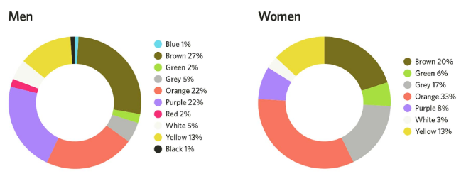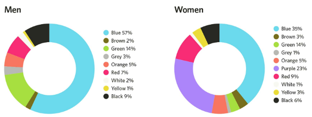 就是說,重要的是要認(rèn)識(shí)到男人和女人對(duì)顏色的看法不同。下圖顯示了男人和女人喜歡的顏色以及他們最不喜歡的顏色: