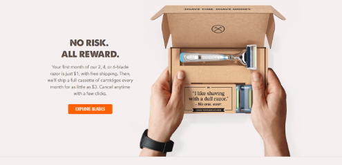 Dollar Shave Club的按鈕只是被按下。他們的網(wǎng)站說明了清晰的號召性用語如何吸引您的注意力并促進前進。