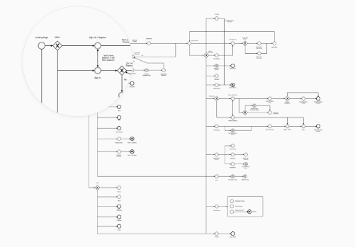 所有這些導(dǎo)致低保真度的最后部分。由于有了白板任務(wù)的結(jié)果,我們現(xiàn)在知道了所有可能的狀態(tài),用戶的輸入和目標(biāo)。總結(jié)所有交互,我創(chuàng)建了一個(gè)圖,說實(shí)話,我已經(jīng)多次更改了此操作的樣式:從具有光柵化版式的Sketch文件變?yōu)閮H用矩形表示每個(gè)頁面的矩形,其名稱如下。話雖如此,這個(gè)過程總是很痛苦,我通常會(huì)遇到一種情況,我們想在此過程中稍后進(jìn)行更改或添加一些內(nèi)容。使用這些解決方案,我通常不得不執(zhí)行更多步驟。例如更改線條,箭頭和圖像的位置。