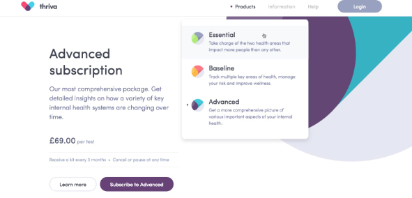 Thriva可通過在家進(jìn)行的血液檢查幫助您跟蹤健康狀況。他們?cè)诓藛沃星宄卣f明了三個(gè)級(jí)別的產(chǎn)品。