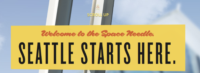 移動元素是吸引用戶注意力的強大工具。如果目標是將用戶的注意力吸引到多個元素中的單個元素上,或者提醒用戶注意更新的信息,那么動畫就可以解決問題。只要屏幕上沒有其他競爭元素,即使是最輕微的動作也將引起注意。西雅圖的太空針塔基地利用了這一微妙之處。該站點通過向上箭頭中的較小但有效的動畫來吸引用戶注意這些說明。