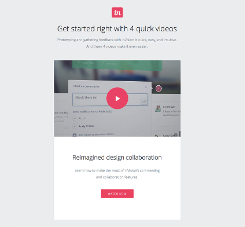 正在注冊(cè)  InVision  原型應(yīng)用程序的用戶會(huì)收到一封歡迎電子郵件,其中明確說(shuō)明了它想要實(shí)現(xiàn)的目標(biāo):讓用戶開(kāi)始使用該應(yīng)用程序。因此,電子郵件顯然是可行的。