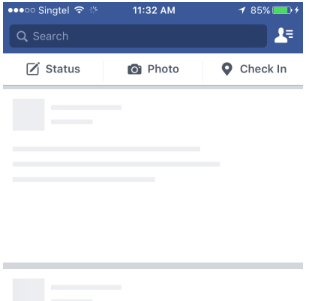 骨架圖像加載迅速,因為它通常是由簡單形狀組成的小圖像。由于骨架模板可以與應(yīng)用程序的數(shù)據(jù)一起存儲在本地,因此在移動應(yīng)用程序中可以進(jìn)一步采用這些技術(shù)。Facebook的iOS應(yīng)用程序向用戶顯示灰色塊和線條,以表示應(yīng)用程序加載時的圖像和文本。完成加載后,圖像和文本將顯示在臨時容器的位置。這并不比具有帶有微調(diào)器的加載屏幕快,但是在用戶的腦海中,感覺確實如此。