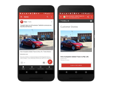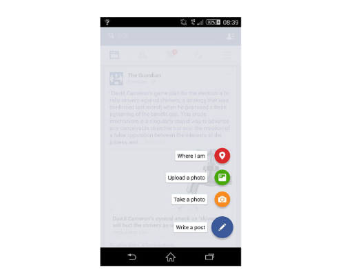 上下文在用戶交互中起著重要作用。有時(shí)用戶想要消費(fèi)內(nèi)容,有時(shí)他們想要執(zhí)行操作。這完全取決于上下文。使用某些上下文行為可以將FAB的優(yōu)點(diǎn)帶到任何應(yīng)用程序的UX中。讓我們以Google+為例。當(dāng)用戶與信息流互動(dòng)時(shí),Google +會(huì)顯示該按鈕,而當(dāng)互動(dòng)反向時(shí)會(huì)隱藏該按鈕。這兩個(gè)狀態(tài)取決于上下文:當(dāng)用戶與社交流互動(dòng)時(shí),主要?jiǎng)幼魇菨L動(dòng),因此不需要FAB;當(dāng)用戶停止?jié)L動(dòng)時(shí),他們可能想發(fā)布一些內(nèi)容。