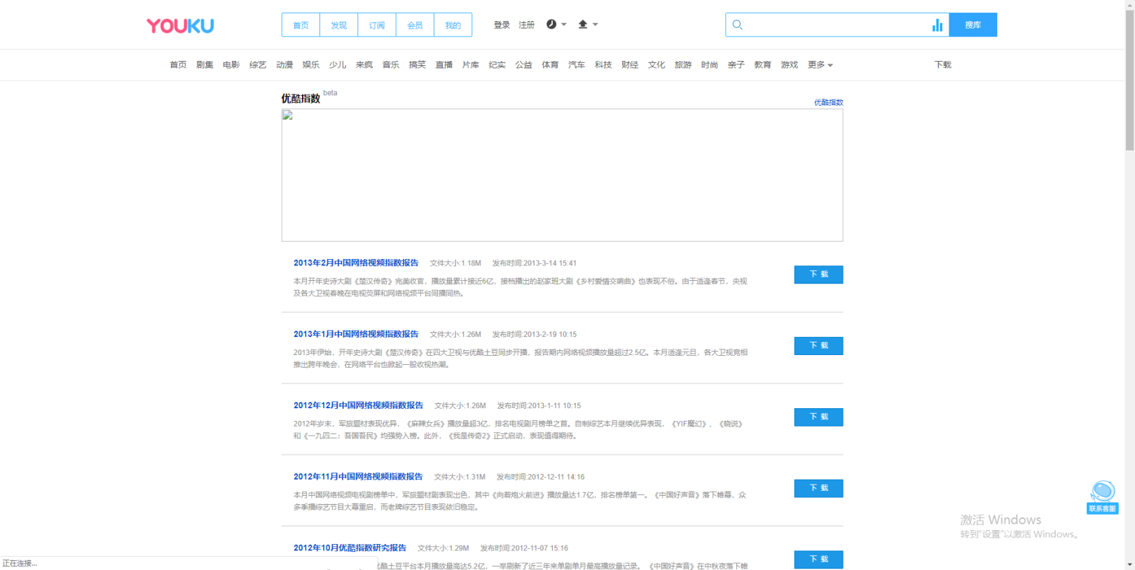 優(yōu)酷的播放排行榜,最近那些電影、電視、綜藝最熱門,可以看看這里,和百度指數(shù)差不多,只是沒(méi)有百度指數(shù)齊全