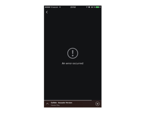 設(shè)計(jì)UX是為流程而設(shè)計(jì)的,在大多數(shù)情況下,流程是為實(shí)現(xiàn)目標(biāo)而前進(jìn)。您應(yīng)避免在應(yīng)用程序中創(chuàng)建死胡同頁面,因?yàn)樗篮瑫斐苫靵y,阻止用戶達(dá)到目標(biāo),并導(dǎo)致其他不必要的操作。以Spotify中的錯(cuò)誤狀態(tài)屏幕為例。它根本不能幫助用戶理解上下文,也不能幫助他們找到問題的答案:“我能做些什么?”
