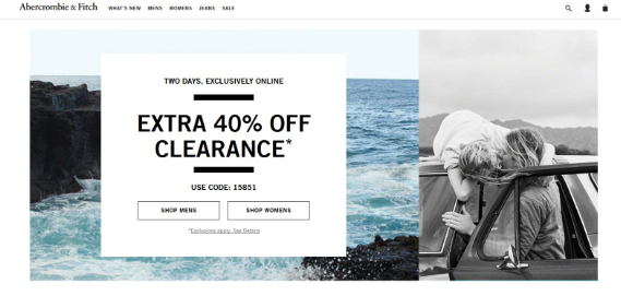 Abercrombie&Fitch的網(wǎng)站提供了此概念的示例。從訪(fǎng)客到達(dá)他們的網(wǎng)站的第一刻起,他們的導(dǎo)航就很容易理解。