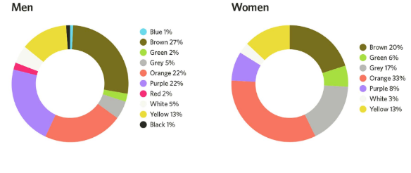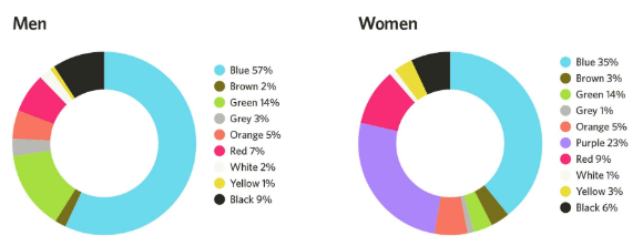 就是說,重要的是要認識到男人和女人對顏色的看法不同。下圖顯示了男人和女人喜歡的顏色以及他們最不喜歡的顏色: