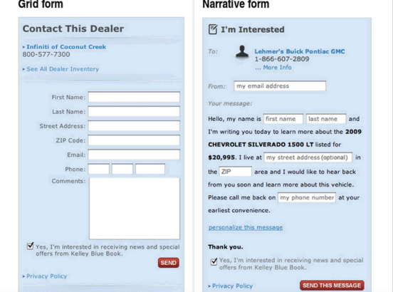 Vast.com是一個使用戶可以搜索敘事形式的網(wǎng)站,該網(wǎng)站使用戶可以搜索數(shù)百萬輛待售汽車和房地產(chǎn)交易。他們A / B使用控件測試了他們的敘述形式,即標(biāo)準(zhǔn)網(wǎng)格形式,并看到轉(zhuǎn)化率提高了 25%至40%。至少以敘述形式進(jìn)行敘述可以使轉(zhuǎn)化率提高25%。