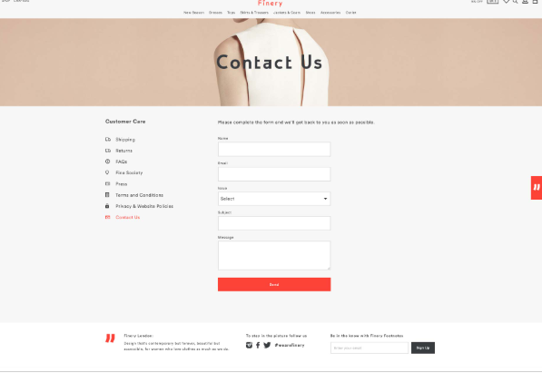 Finery的表格包含一個下拉列表,用于指定您與他們聯(lián)系的原因。這是一個額外的字段,可以省略,但包括它可以提高發(fā)送消息的質(zhì)量。