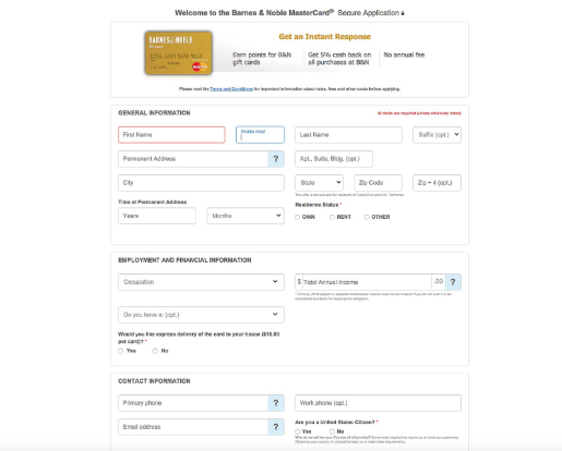 注冊頁面的巴恩斯&貴族萬事達(dá)信用卡就是清晰度占主導(dǎo)地位的形式這樣一個例子。通過查看這些字段,我們可以立即看到框內(nèi)易于理解的標(biāo)簽并且易于閱讀。