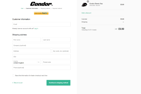Condor的結(jié)帳流程不會強(qiáng)制您進(jìn)行注冊。登錄帳戶可簡化結(jié)帳過程,但默認(rèn)形式是用于訪客。