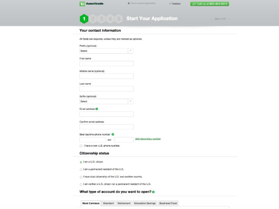 如果您的客戶的目標(biāo)是更多潛在客戶,那么您的表格應(yīng)該相對簡短,例如Marketo的免費(fèi)數(shù)字下載指南的注冊表格。如果您的客戶希望獲得更多高質(zhì)量的潛在客戶,那么可以通過添加更多字段來延長表格的長度,這樣您的客戶就可以獲得更多信息。例子:TD Ameritrade的帳戶注冊表格