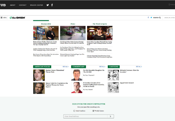 AIGA設(shè)計(jì)會(huì)議2015的微型站點(diǎn)?包括一個(gè)主頁按鈕,該按鈕不在微型站點(diǎn)的首頁上,而是在AIGA主頁上。Wilson QuarterlyThe Onion都使用徽標(biāo)將其頁腳鏈接到其主頁,但是Redesignd將其與其他有用的鏈接混合在一起。
