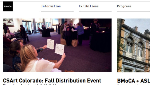 貝格(Berger&F?hr)對(duì)博爾德當(dāng)代藝術(shù)博物館(Boulder當(dāng)代藝術(shù)博物館)場(chǎng)地的重新設(shè)計(jì)明顯體現(xiàn)了基于網(wǎng)格的結(jié)構(gòu)。明顯的區(qū)別是印刷網(wǎng)格完全應(yīng)用于網(wǎng)站內(nèi)容的程度:從搜索表單,導(dǎo)航下拉菜單,日歷視圖,頁(yè)腳文本和鏈接來(lái)看,這顯然是一致的。更重要的是,網(wǎng)格的效用在站點(diǎn)的響應(yīng)狀態(tài)下保持一致。