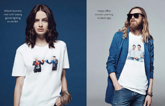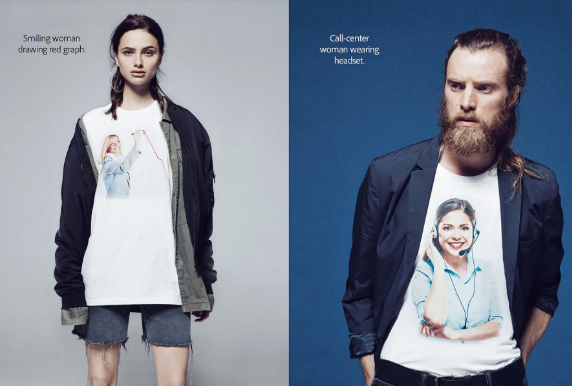 現(xiàn)在,我們所有人,每個人都有一條服裝生產(chǎn)線。確實(shí),這只是一條T恤衫,但每個人都可以聯(lián)想到圖像。這是因?yàn)槊總€人都以幾乎可疑的多元文化圖像來代表,這些圖像中的商務(wù)人士露出潔白的牙齒。