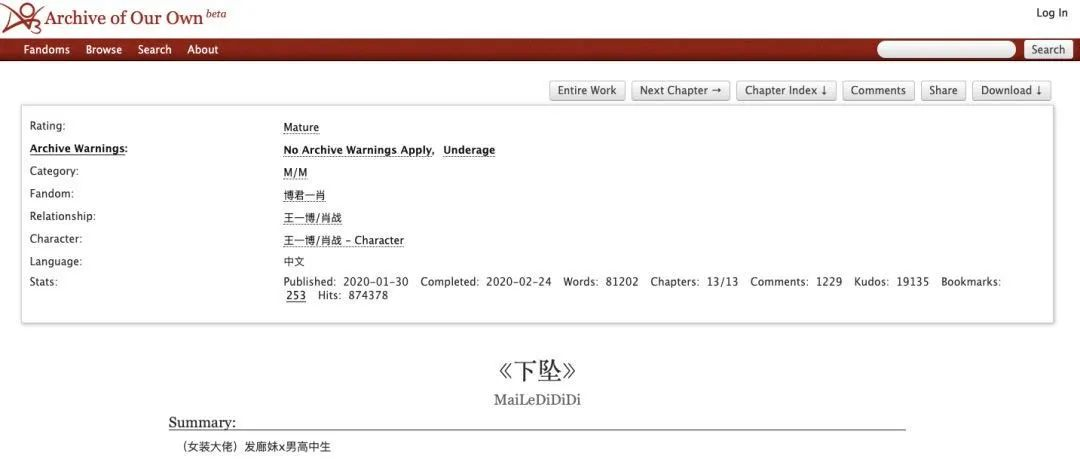 同人創(chuàng)作者當然清楚這是不適合拿到公眾平臺上分享的,所以他們會設置各種各樣的障礙和門檻,比如發(fā)在一些小眾網(wǎng)站上,而且這些網(wǎng)站要設計重重標簽,使得圈外的人最大可能性地點不進來。AO3網(wǎng)站就是這樣,你首先要在幾百個標簽里找到這篇文,然后這篇文上會注明預警,提示你文章會寫到什么,你接受不了就離開。