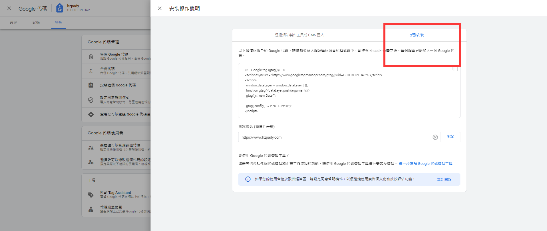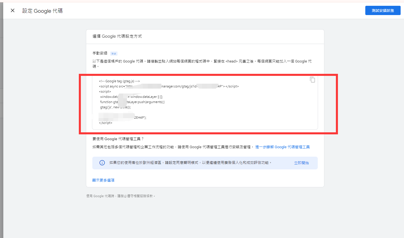 從 手動安裝中也可以復制出來代碼