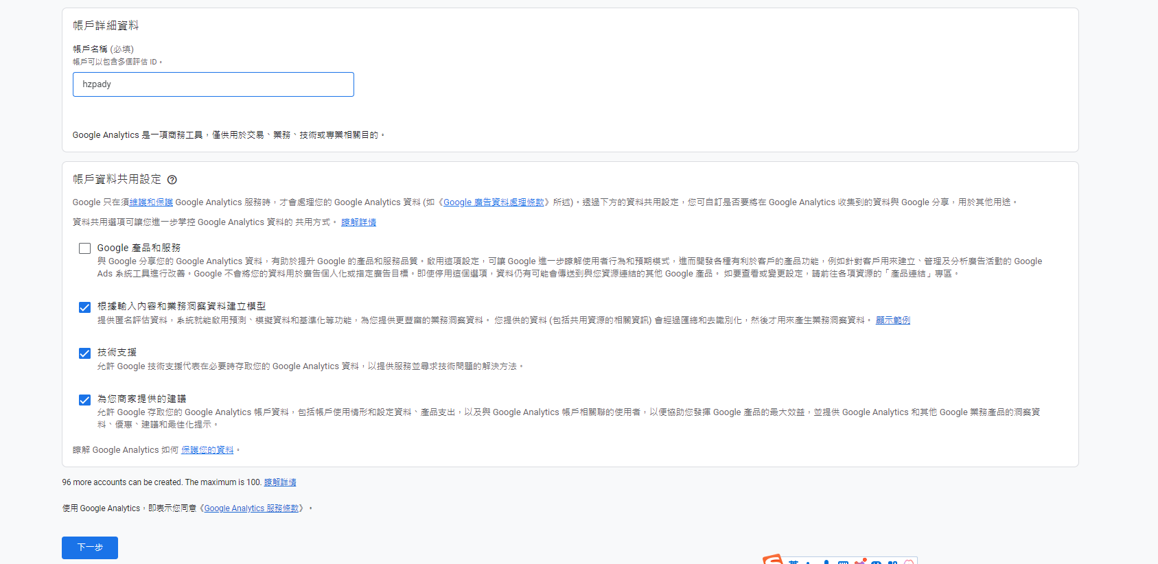 新增一個統(tǒng)計賬戶
